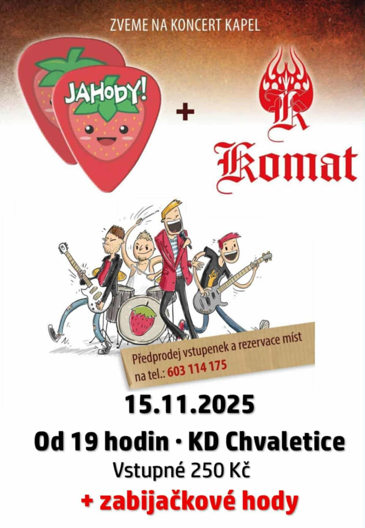 Awe, 18.11. akce Jahody a Komat. Vstup 200kč. Běží předprodej vstupenek.